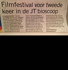 Lees MeerHoewel het barst van de filmfestivals en Collegiaal Vlaardingen zichzelf liever openlijk liquideert dan stiekem op de kaart zet, slaagde Arno Tessers er als filmisch epicentrum in JT Bioscoop met pure filmliefhebbers en dito –makers lekker vol te krijgen. Film kijken, dames en heren, helpt gedachten van dagelijkse ongein en andere ellende doen afdwalen.